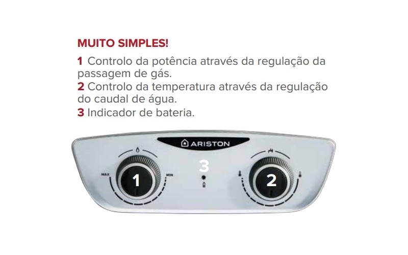 A ignição eletrónica, ao funcionar sem chama piloto, oferece ao utente a máxima segurança, já que a válvula de gás se abre apenas perante um pedido de tiragem de água quente.