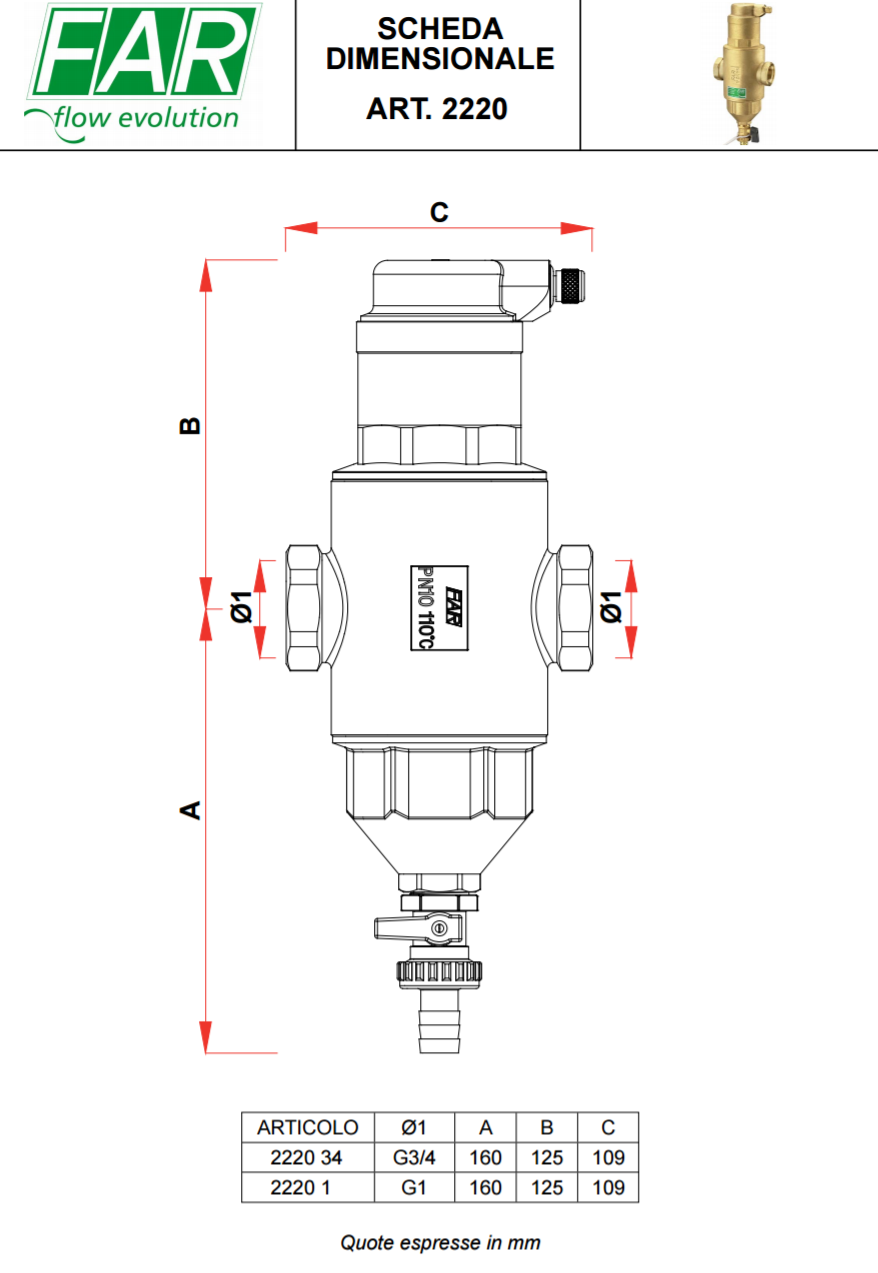 Purgador Com Filtro FAR COMBI 2220 de Alto Rendimento de Purga, especifico para eliminação de micro bolhas de ar e todo o tipo de lixo na instalação.