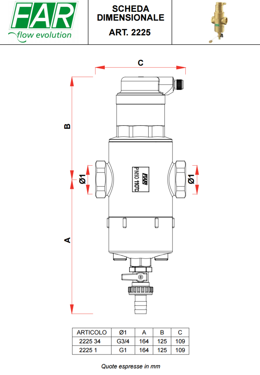 Purgador Com Filtro FAR COMBI 2225 de Alto Rendimento de Purga, especifico para eliminação de micro bolhas de ar e todo o tipo de lixo na instalação.