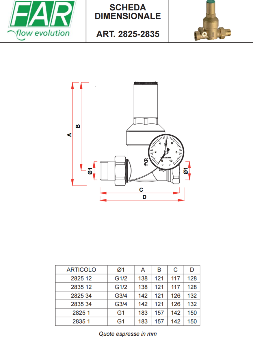 Redutor de Pressão FAR 2830 de Elevado Rendimento, ideal para situações de pressão elevada ou finais de linha.