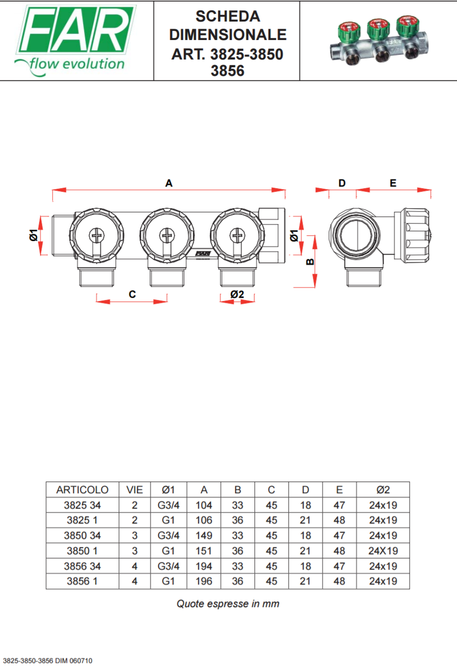 Colector 3850 FAR MF para distribuição, compativel com aplicações sanitarias ou de aquecimento central.
