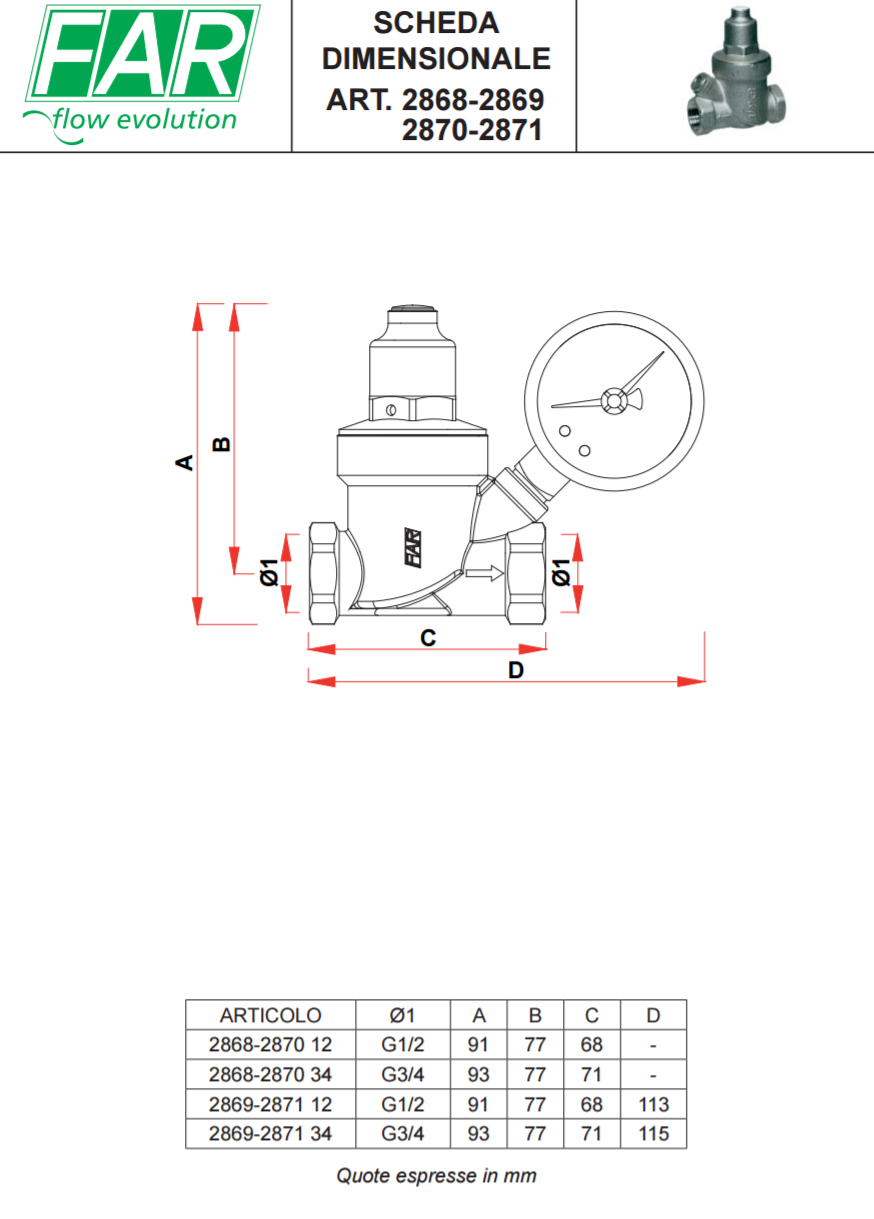 Redutor de Pressão FAR 2871 com manometro 0-10bar incluido , ideal para situações de pressão elevada moderada.